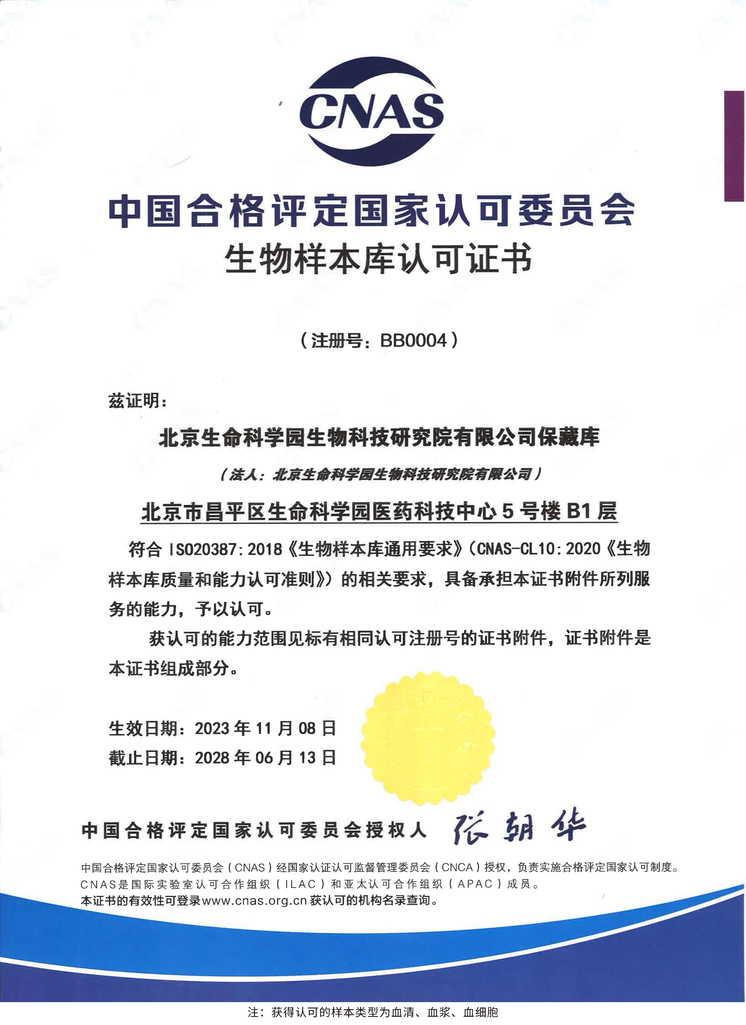 北京生命科學(xué)園生物科技研究院(以下簡(jiǎn)稱“北京生物樣本資源庫(kù)”)(Biobank of Life Science Park,簡(jiǎn)寫“BoLSP”)是一家由北京市科委和中關(guān)村生命科學(xué)園共同支持設(shè)立的第三方生物樣本庫(kù)公共服務(wù)平臺(tái),秉承北京重大疾病臨床數(shù)據(jù)和樣本資源庫(kù)(以下簡(jiǎn)稱“北京庫(kù)”)(Beijing Biobank of Clinical Resources,BBCR)十余年的發(fā)展成果,聚合眾多臨床樣本專家的專業(yè)共識(shí),致力于在生命科學(xué)、生物醫(yī)藥研究領(lǐng)域發(fā)揮銜接樣本資源持有者與研究者的橋梁作用,解決生物樣本資源開發(fā)上下游信息不對(duì)稱、資源共享困難等問題。研究院在北京中關(guān)村生命科學(xué)園昌平園區(qū)建立了2000㎡生物樣本庫(kù),最大存儲(chǔ)規(guī)模達(dá)1000萬(wàn)份。研究院遵循CNAS-CL10:2020《生物樣本庫(kù)質(zhì)量和能力認(rèn)可準(zhǔn)則》,同時(shí)結(jié)合北京庫(kù)過去十年的工作經(jīng)驗(yàn)與教訓(xùn),建立了一套完善的生物樣本保藏質(zhì)量管理體系,從人、機(jī)、料、法、環(huán)、控多個(gè)角度,實(shí)現(xiàn)生物樣本保藏過程的全面質(zhì)量控制,先后獲得國(guó)家科技部頒發(fā)的人類遺傳資源保藏行政許可證書和中國(guó)合格評(píng)定國(guó)家認(rèn)可委員會(huì)(China National Accreditation Service for Conformity Assessment,CNAS)頒發(fā)的“CNAS認(rèn)可證書”。